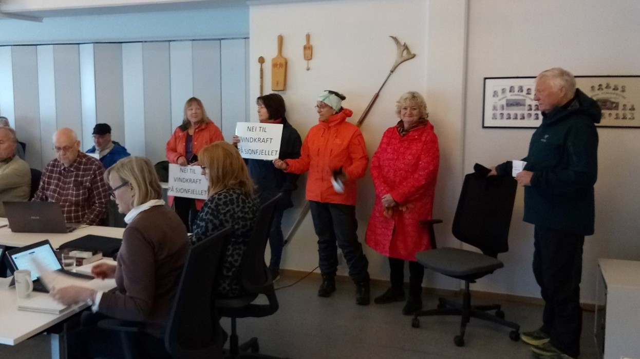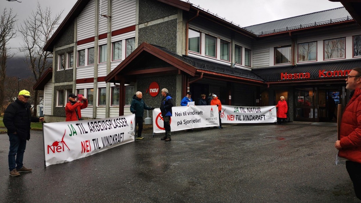 Nasjonal markering mot vindkraft utenfor Nesna Kommunehus, i forkant av formannsskapsmøte.